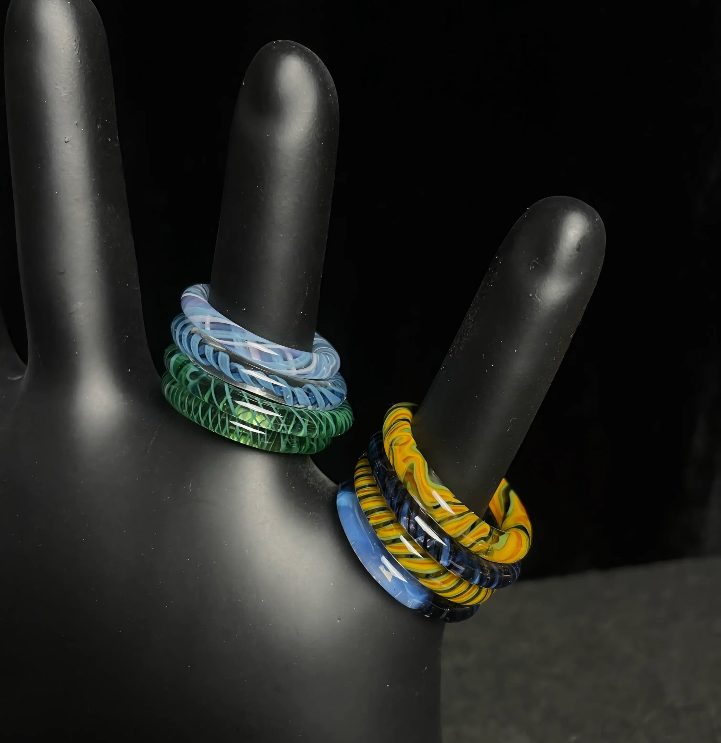 BBGallery Shop › Glass rings Image 1 of 2 Image 2 of 2 Glass rings $25.00 Made by Sarah Marblesbee Color / material: Lady bug Heart smaller Purple crushed opal Larger heart Pink flower Blue spiral small Blue spiral larger Green spiral larger Green spiral smaller Yellow spiral smaller Yellow spiral large Ghost blue & crushed opal small Ghost blue & crushed opal large Add To Cart Added! Made by Sarah Marblesbee